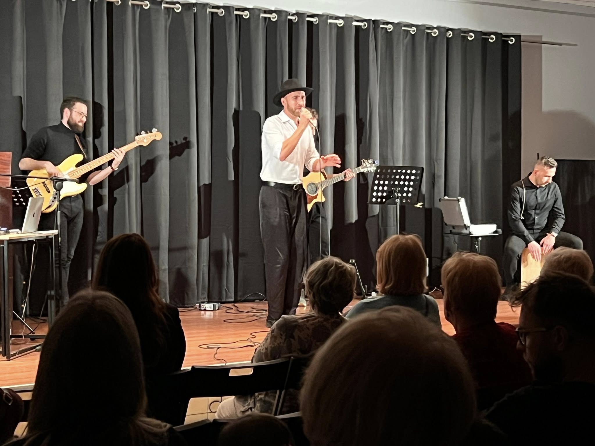 Piątkowego (10.10.2025) wieczoru na scenie Osiedlowego Domu Kultury “Bajka” wystąpił Piotr Paterka z zespołem. Artyści zabrali słuchaczy w muzyczną podróż, wykonując polskie i światowe klasyki muzyki popularnej