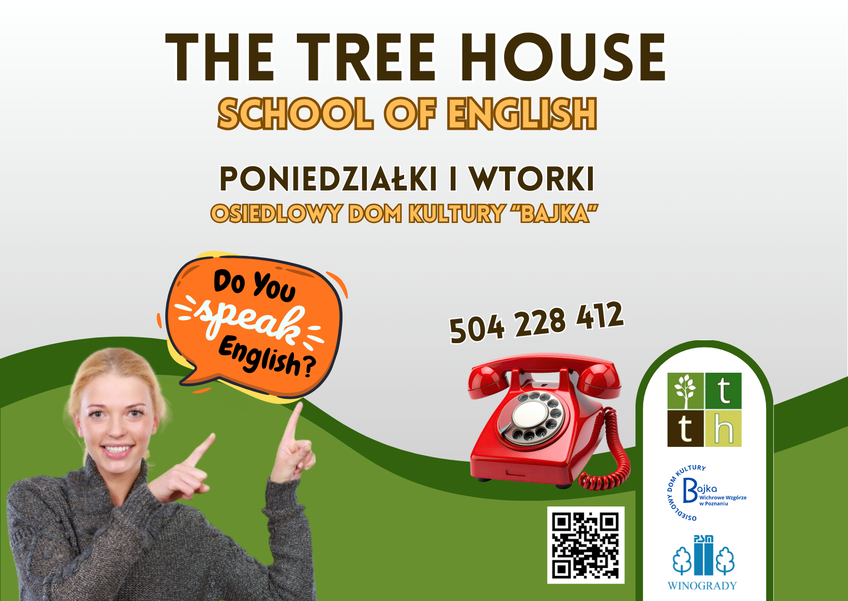 To co wyróżnia The Tree House na tle innych szkół to fakt, że Sara i Patrick uczynili z nauczania języka angielskiego swoją specjalność.Jako native speakerzy języka angielskiego wnoszą do zajęć autentyczność i pracują ciężko, aby stworzyć atmosferę, w której uczniowie czują się komfortowo oraz mogą ćwiczyć i poszerzać swoją znajomość tego języka.