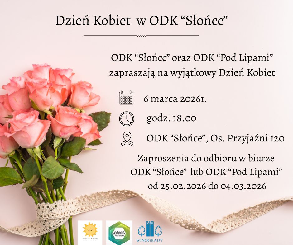 Zaproszenia można odbierać w biurze ODK “Słońce” oraz ODK “Pod Lipami” w terminie od 25.03.2026 do 04.03.2026.