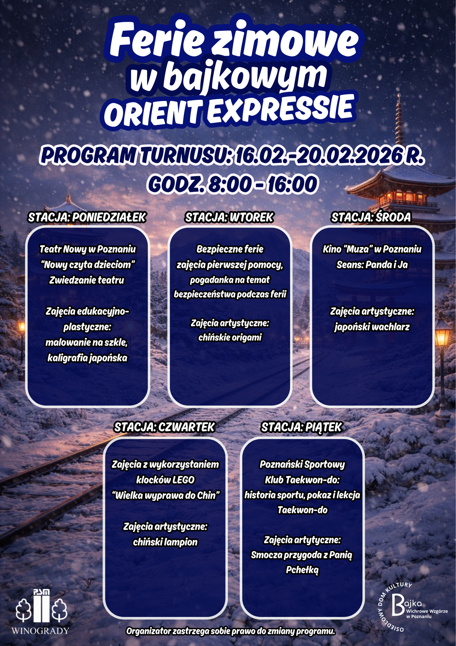 FERIE ZIMOWE W BAJKOWYM ORIENT EXPRESSIE - PROGRAM - PSM Winogrady