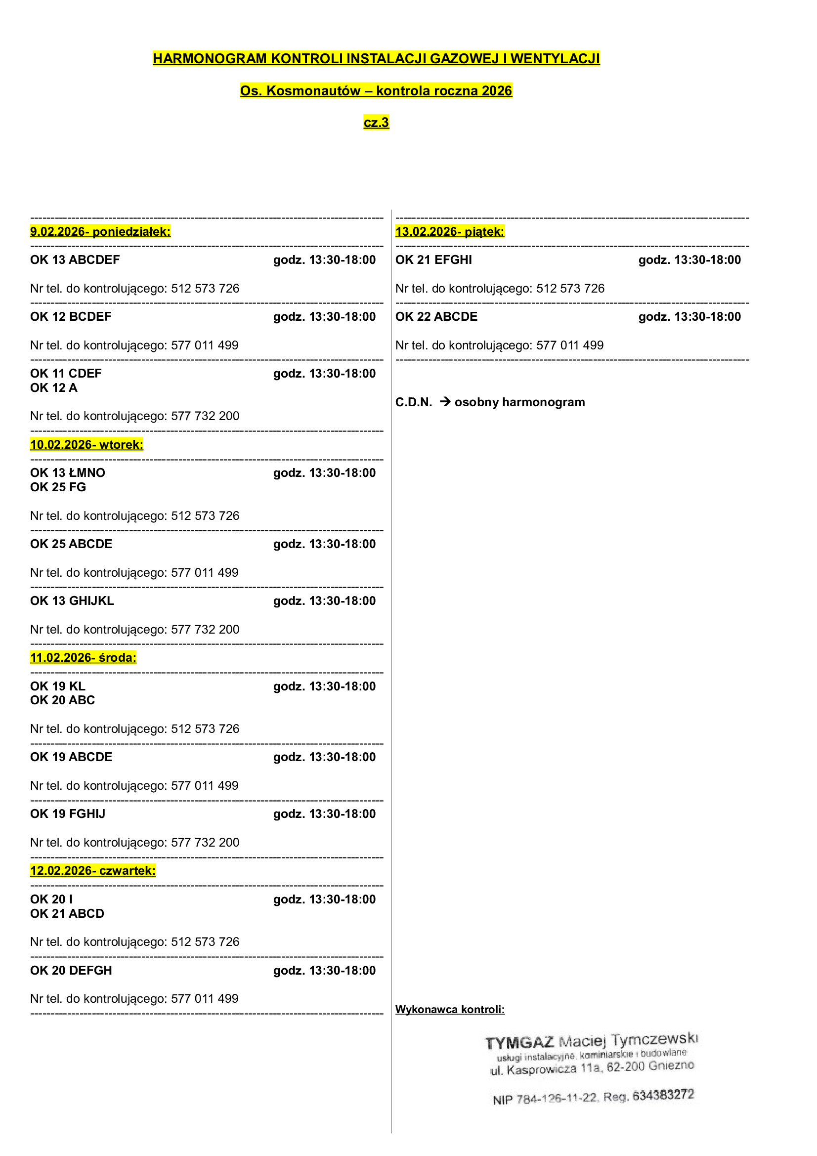 Harmonogram kontroli instalacji gazowej i wentylacji OK - kontrola roczna 2026 cz. 3 - PSM Winogrady