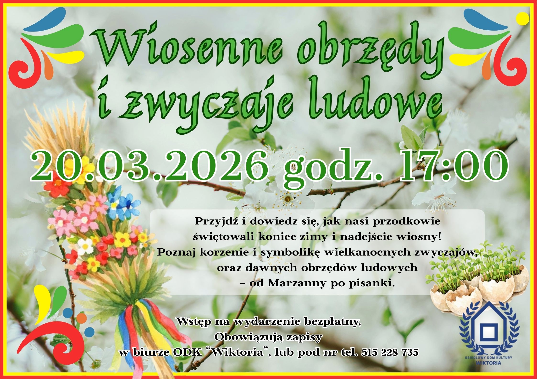 Wraz z nadejściem wiosny zapraszamy do Domu Kultury “Wiktoria” na wyjątkowe spotkanie z tradycją. 20.03.2026 o godz. 17:00 będzie można […]