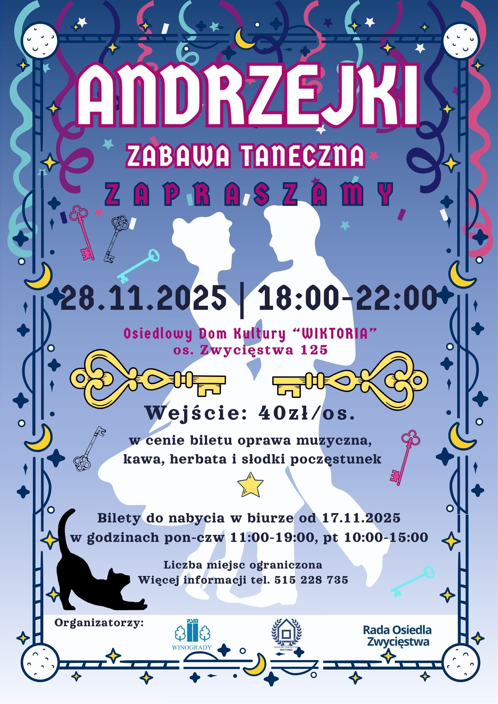 Serdecznie zapraszamy na Andrzejkową Zabawę Taneczną, która odbędzie się 28.11.2025 o godz. 18:00 w ODK “Wiktoria”.