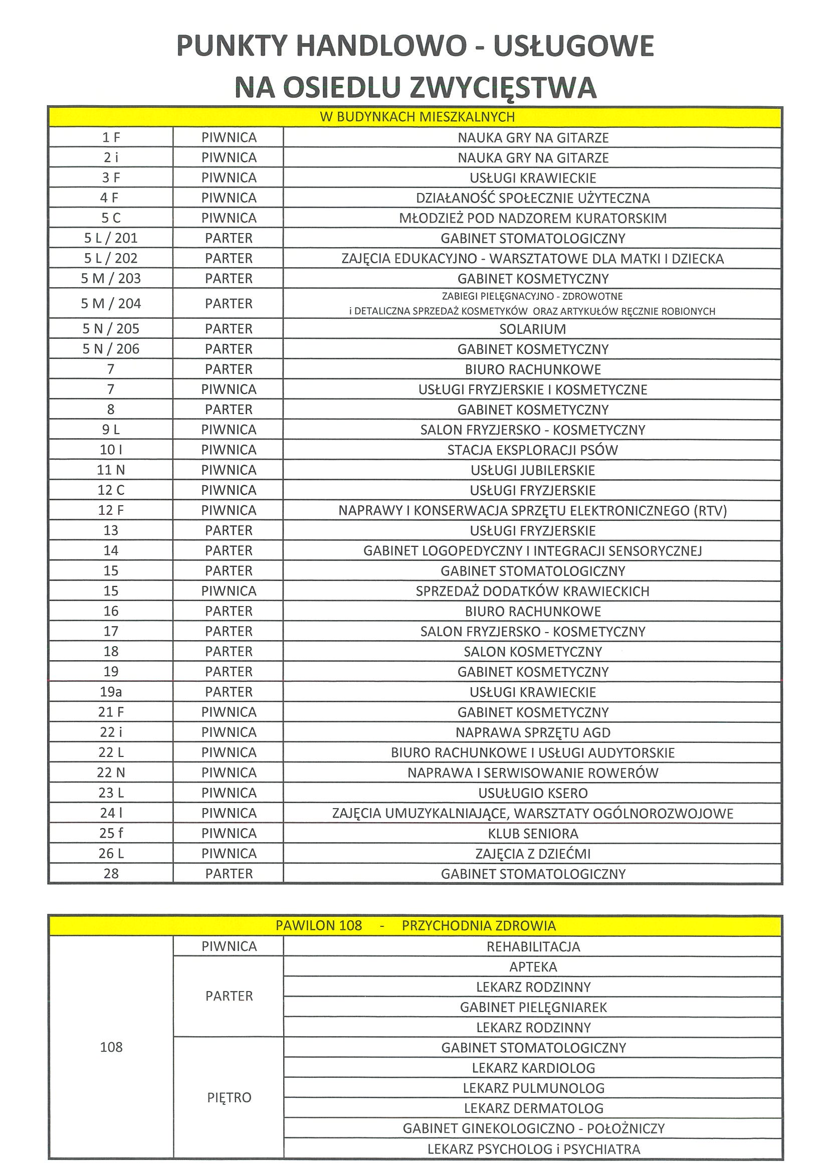 PUNKTY HANDLOWO – USŁUGOWE NA OSIEDLU ZWYCIĘSTWA