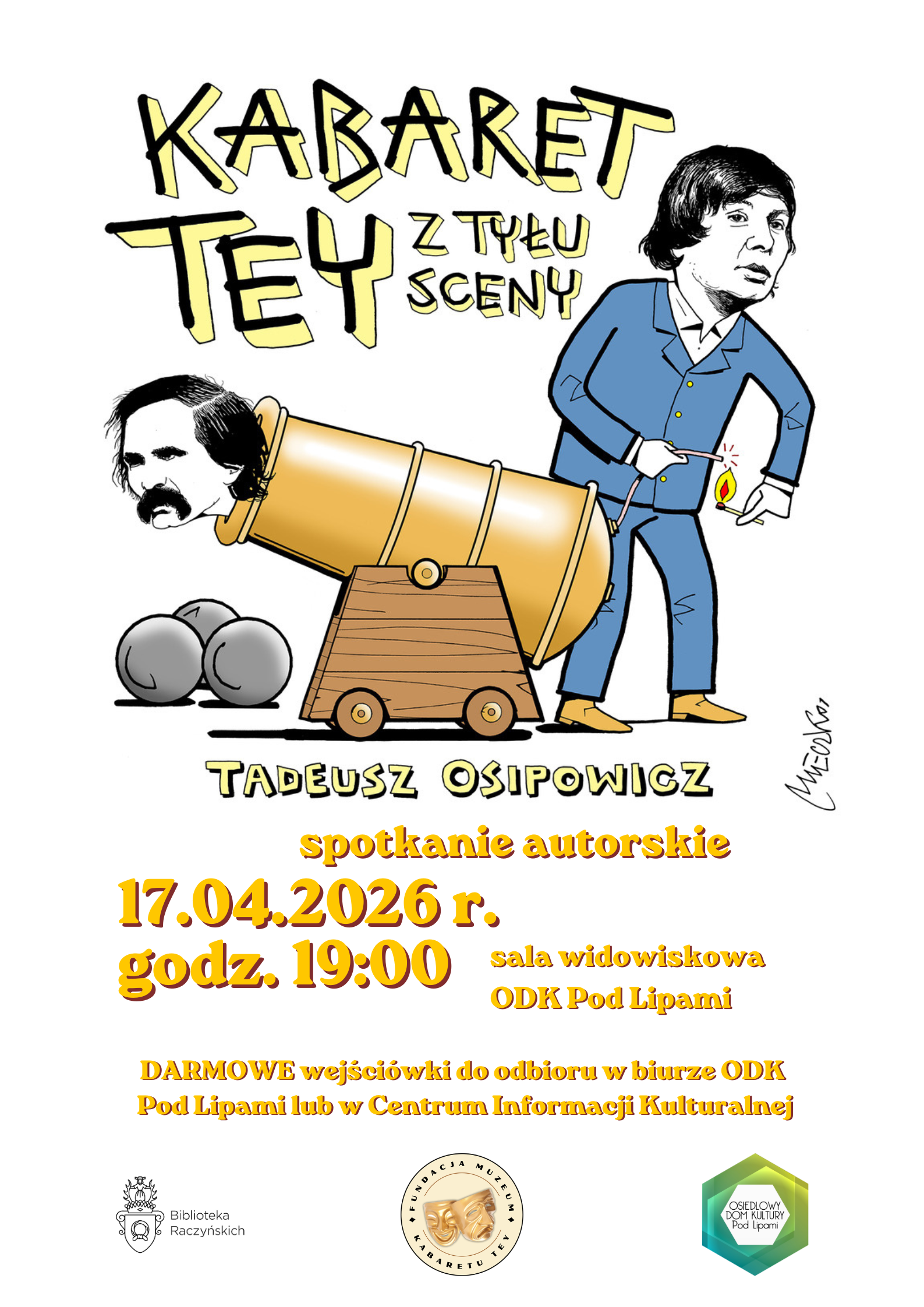 Serdecznie zapraszamy na wyjątkowe spotkanie autorskie z Tadeuszem Osipowiczem, autorem niezwykłego albumu „Kabaret TEY – z tyłu sceny”. To książka, która odsłania kulisy jednego z najważniejszych i najbardziej kultowych zjawisk w historii polskiego humoru.
