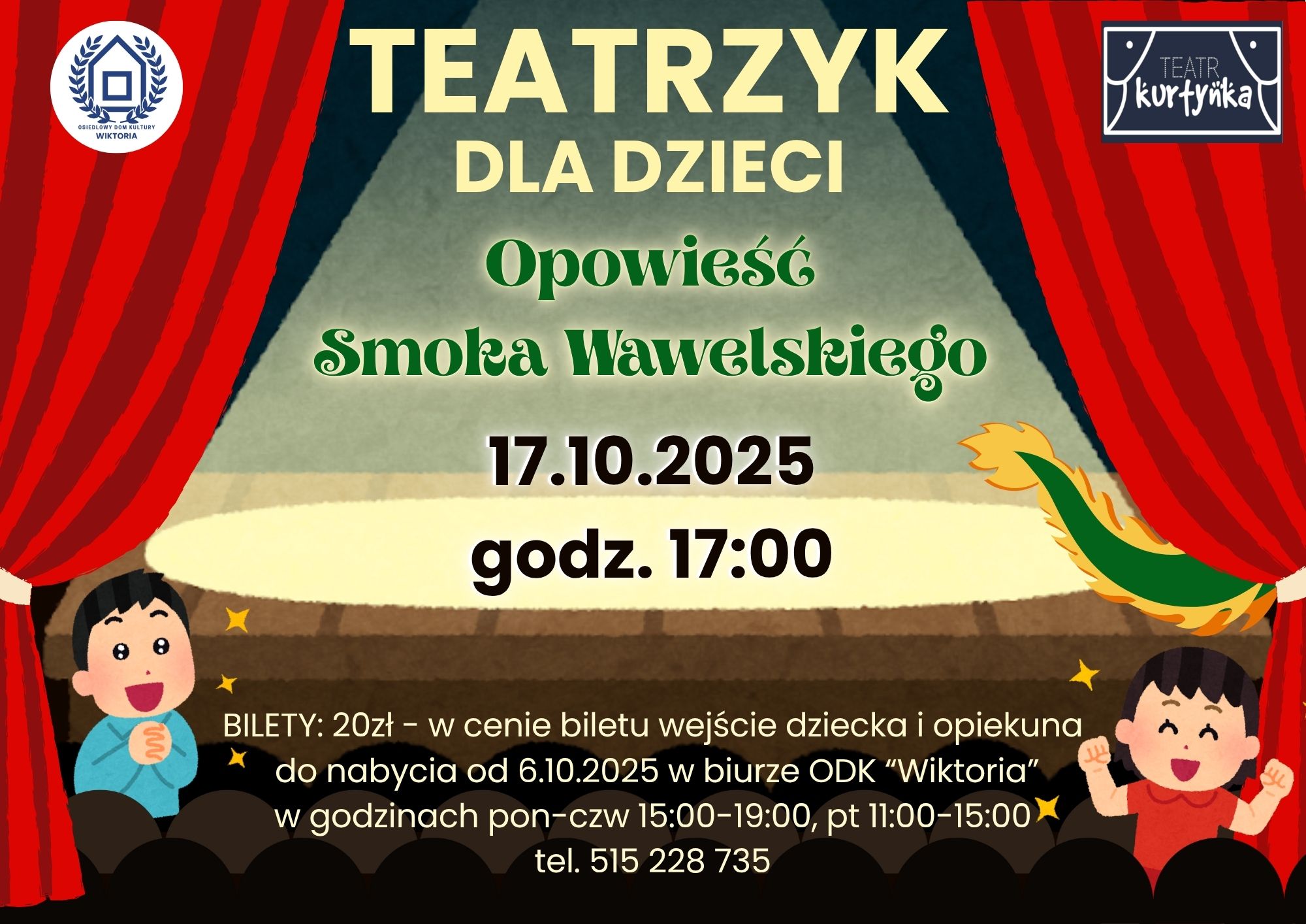 Znany i lubiany teatr Kurtynka pokaże klasyczną polską legendę w zupełnie nowej odsłonie. Kim był Smok Wawelski? Jak trafił do Krakowa? Jaki był i co się z nim stało? Tego wszystkiego dowiemy się 17.10.2025 o godzinie 17:00