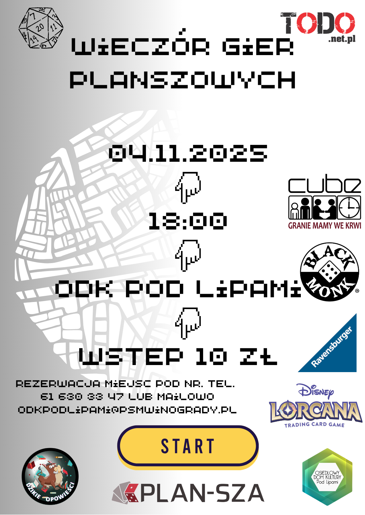 Osiedlowy Dom Kultury „Pod Lipami” i Dzikie Opowieści już po raz szósty zapraszają Was na Wieczór Gier Planszowych. Podczas kolejnej edycji wydarzenia będziecie mogli:
