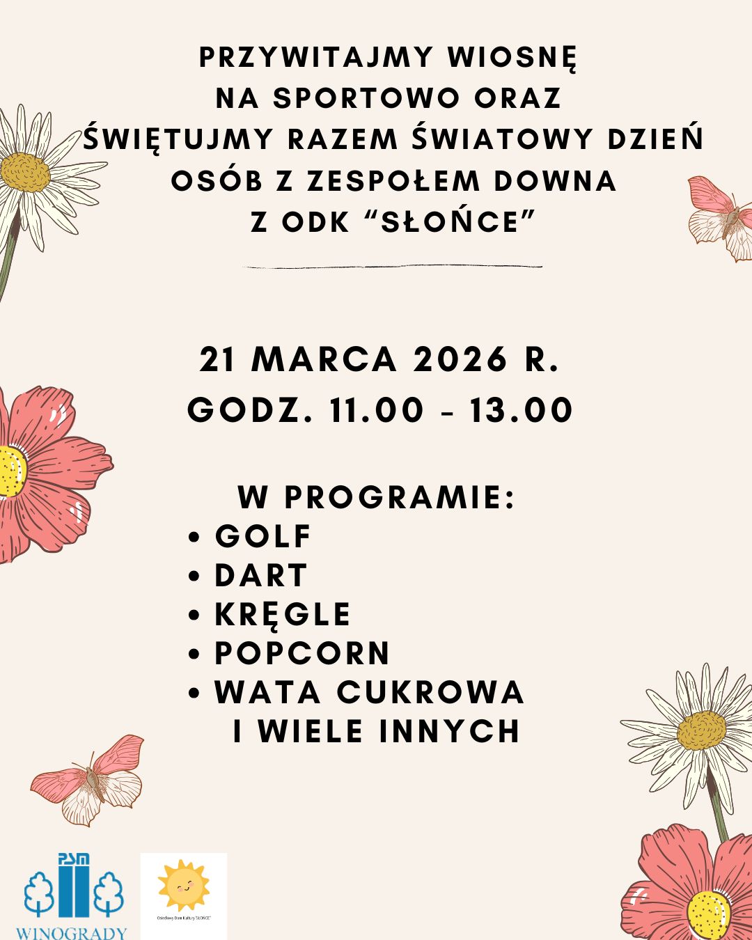 Przywitajmy wiosnę na sportowo oraz świętujmy razem Światowy Dzień Osób z Zespołem Downa z ODK “Słońce” - PSM Winogrady