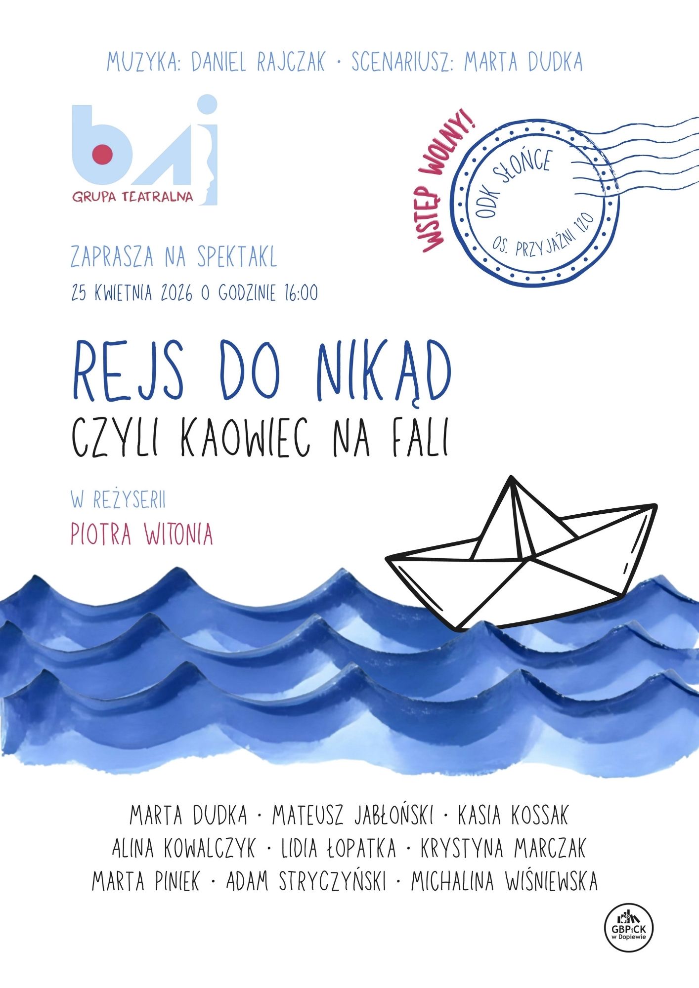 Spektakl Grupy Teatralnej Baj pt. "Rejs do nikąd czyli kaowiec na fali" w ODK "Słońce" - PSM Winogrady